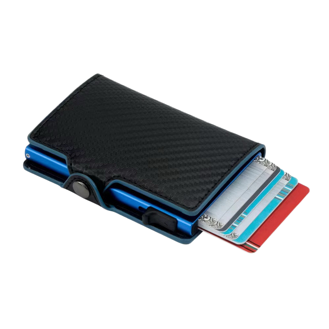 Futuristic Wallets for Athletes. Features a compact, lightweight design with RFID tech. Available in Blue, Red and Black.
